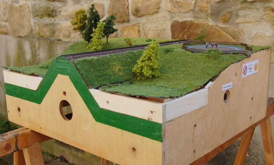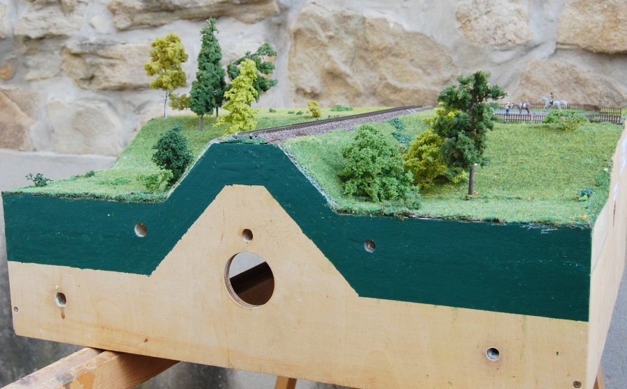 Was blieb, war der für eine glaubwürdige Landschaftsgestaltung stets hinderliche Bahndamm mit einer Höhe von 80 mm, die im Original fast 10 m entspricht und insbesondere bei der Darstellung von Brücken und Durchlässen gestalterische Kunstgriffe erforderte. Zweigleisige Damm-Module wurden aus dieser Erfahrung heraus von vornherein mit einer Dammhöhe von 50 mm konzipiert.