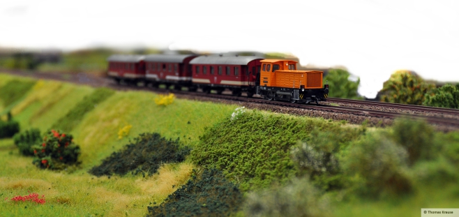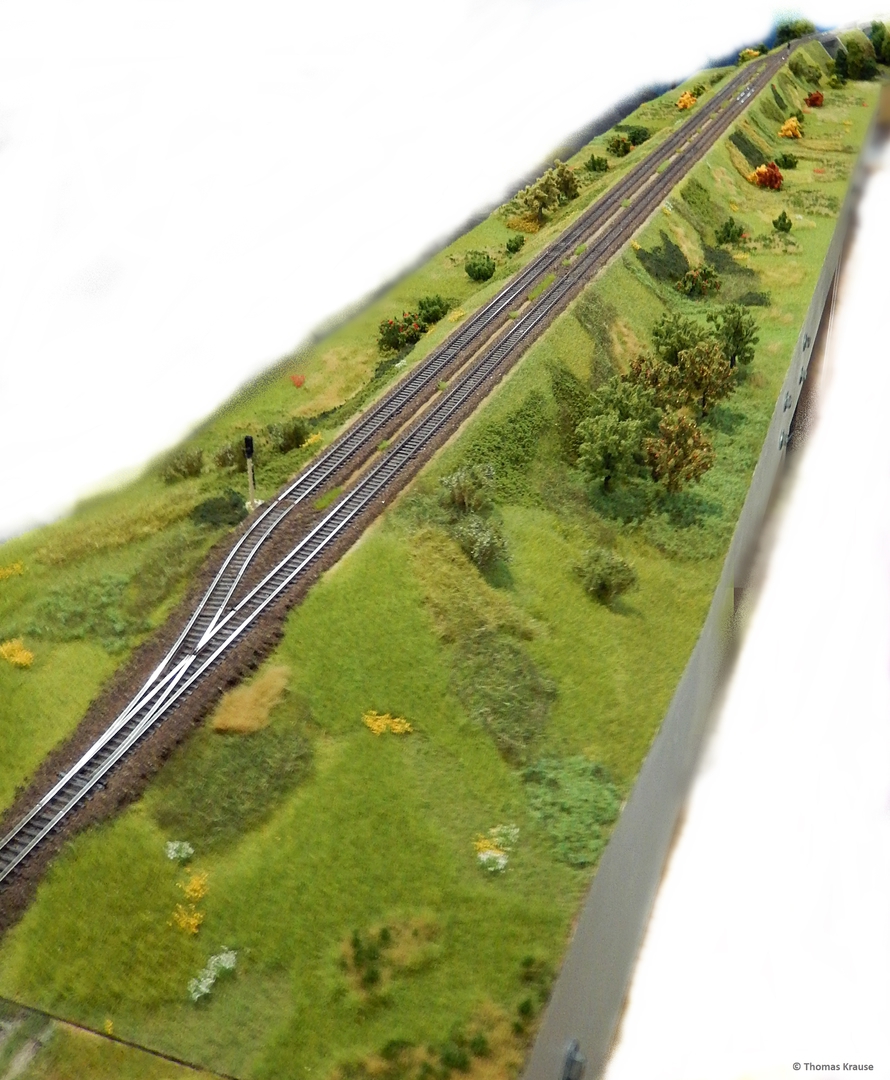 Das Modell besteht aus 3 Modulsegmenten und entspricht dem Zeitraum 1985 – 1993. Befahren wurde dieser Streckenabschnitt nur mit werkseigenen Zügen des BKW Geiseltal und der Leuna Werke. Eine Seite des Moduls ist als Bahndammschnittstelle ausgeführt.