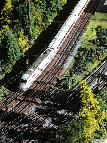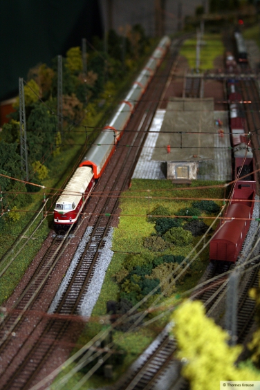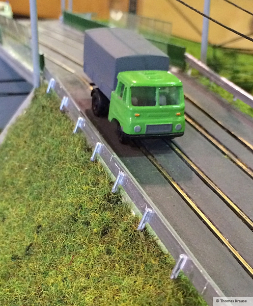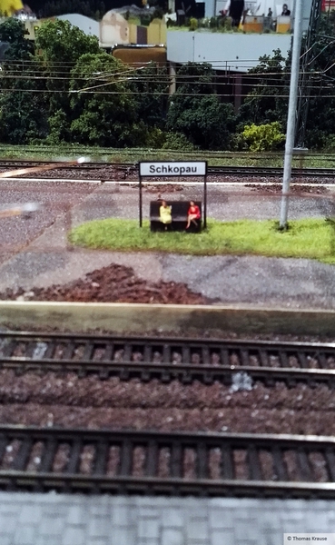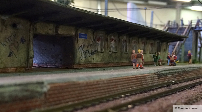Das Modell besteht aus derzeit 5 Segmenten. Die in der nördlichen Bahnhofseinfahrt liegende Saalebrücke mit Einfahrsignal ist auf einem 6. Segment geplant.