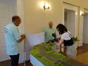 Zu den Besuchern der Ausstellung gehörte ebenfalls eine Delegation aus der polnischen Partnerstadt Ciechocinek. Der Bürgermeister von Bad Dürrenberg, Herr Christoph Schulze, stellte den Verein Mitteldeutsche TT-Modulbahner vor. Er betonte dabei, dass die Vereinsmitglieder immer die Stadt bei Veranstaltungen unterstützen. Dazu gehören u. a. das Brunnenfest, die Technik-Jubiläen sowie die Vorbereitung und Durchführung der 5. Landesgartenschau von Sachsen-Anhalt im Jahr 2023, für die wenige Tage zuvor gemeinsam mit den Eisenbahnfreunden Kötzschau eine Kooperationsvereinbarung mit der LAGA gGmbH unterschrieben wurde. Die polnischen Gäste zeigten großes Interesse an der Präsentation. Einige Delegationsmitglieder gaben sich als Modelleisenbahner zu erkennen – der Ausgangspunkt für Fachsimpeleien.