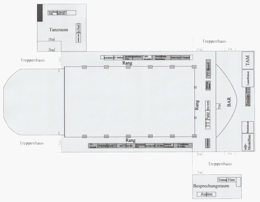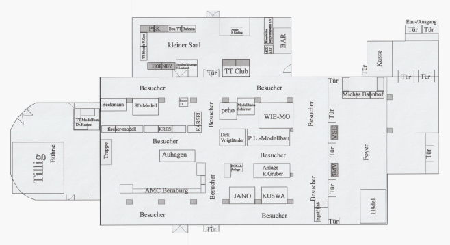 Die AKTT Publikumsmesse 2019 in der Stadthalle Gotha verteilt sich auf 2 Etagen. Hier finden Sie eine Übersicht der Aussteller, Anlagen, Händler und Vereine in den einzelnen Sälen.