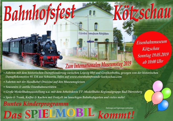 Am Sonntag, den 19.05.2019 ab 10:00 Uhr fand im Rahmen des Internationalen Museumstages 2019 das Bahnhofsfest im Bahnhof Kötzschau statt.