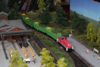 Nach einem kurzen Tunnelabschnitt ist auch der Bahnhof Hohendorf von Thomas Krause mit seiner Rohholzverladung erreicht.