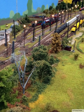 Dort befindet sich ein kurzer zweigleisiger Abschnitt, bevor die Strecke in den Kohlebahnhof Stellwerk 91 von Ingolf Willimsky einfädelt.