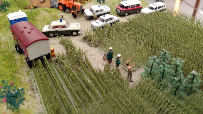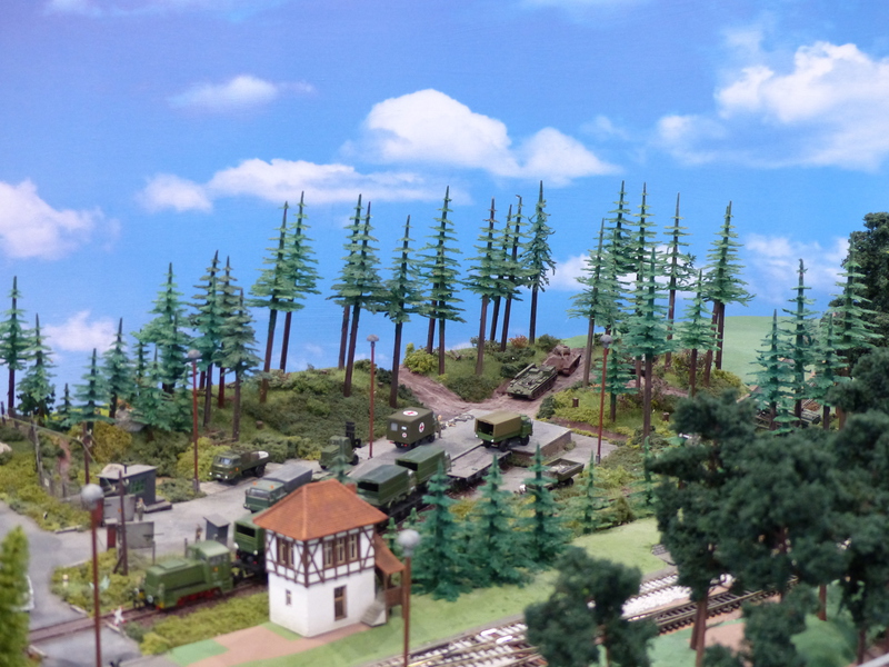 Die leeren Kohlewagen für das Heizwerk werden gegen beladene Wagen getauscht. Währenddessen passieren immer wieder Militärzüge den Bahnhof Stellwerk 92, um auf den Modulen von Kay Falz den dort