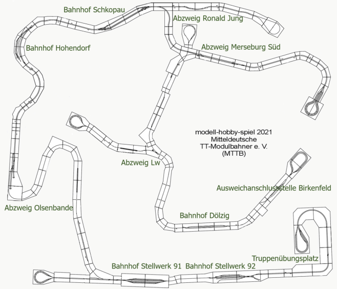 nachgebauten Truppenübungsplatz zu erreichen. Damit sind über 200m Strecke durchfahren und wir beenden unsere Rundreise über unser Modularrangement der modell - hobby - spiel 2021.