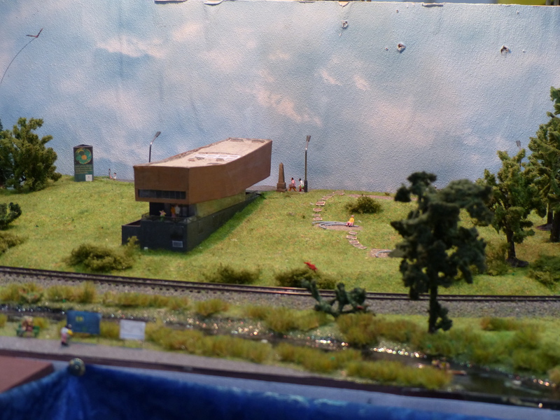Kurz vor dem Bahnhof Stellwerk 91 hat Ingolf Willimsky das Modell einer Kohleauftauanlage gebaut, mit der im Original in den Wintermonaten, mittels des Triebwerkes eines Düsenjets festgefrorene Kohle