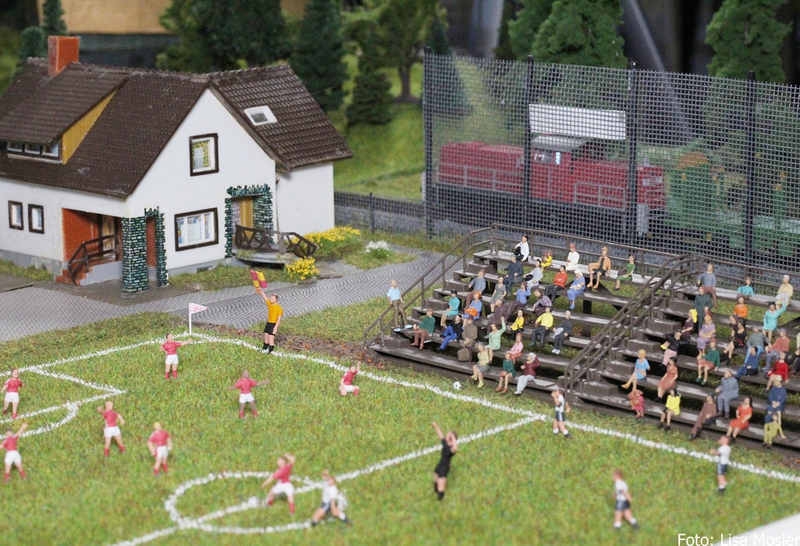 Auch wenn der Bahnhof im Original nur im Nahverkehr Bedeutung hat, ist es im Modell unser großer Bahnhof, an dem auch Fernverkehrszüge planmäßig halten und unsere Modellfiguren in alle Richtungen