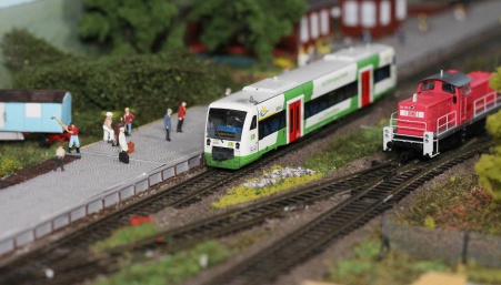 Dort rollen der Bundeshauptstadt entsprechend viele bunte Züge im Blockabstand über die Module der Regionalgruppe Modulbau Berlin Brandenburg.