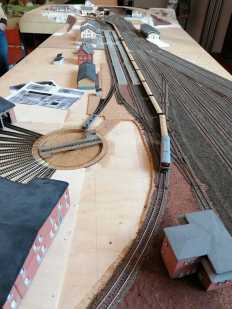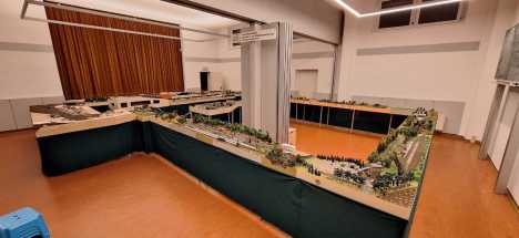 Zwei mehrgleisige Wendeschleifen bieten genügend Platz zum Abstellen von Zügen und garantieren einen abwechslungsreichen Zugbetrieb auf dem Modularrangement. Insgesamt werden rund 80 Module verbaut.